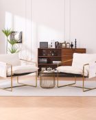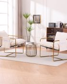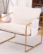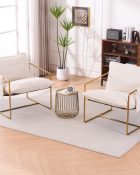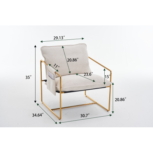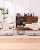2 Chairs in 1 Box, Upholstered Hanging Armchair with Arm PocketsMetal frame, gold-plated craftsmanship, crushed foam cushions and skin-friendly woven fabric for living room and bedroom. Beige