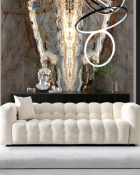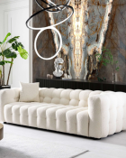 thanks to its tufted chesterfield design. This designer style french boucle sofas creates an inviting space for your guests or