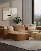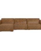 - Handcrafted, modern-style left-facing sectional sofa with a clean, boxy silhouette is generously sized to offer comfortable seating for 4 people; this leather couch measures 122-inches wide and accommodates up to 1,200 lbs.