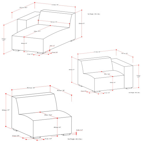 - The backs have a slightly reclined position and are padded with high-density foam wrapped in high-quality polyester for a comfortably supportive feel, while the padded armrests are extra-wide to conveniently keep necessities within reach.